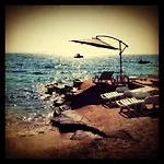 De strandfaciliteiten van Beach Split bevatten zonnestoelen en parasols.